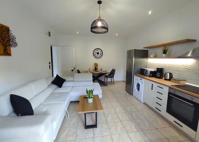 Indkvarteringen er og byder på et udstyret køkken med alle nødvendige redskaber til at tilberede måltider. Det er en 5-minutters kørsel fra Korfu Internationale lufthavn.